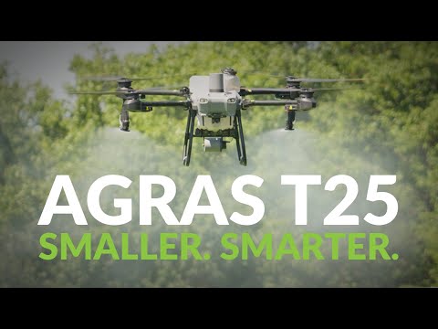 The DJI Agras T25 is a compact agricultural drone featuring a 20-liter spray tank and a 25-kilogram spreading capacity. Equipped with front and rear phased array radars, a binocular vision system, and a high-resolution FPV gimbal camera, it ensures precise, efficient, and safe operations across diverse terrains.